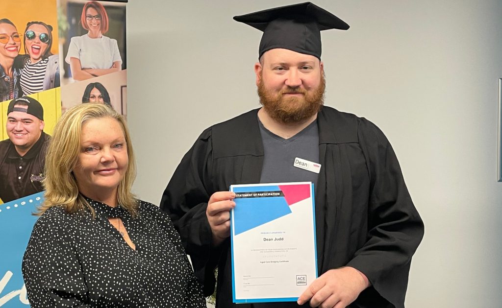 I was lucky enough to secure employment with Uniting Aged Care shortly after my placement, and have been able to work the days and hours I want while I’m still learning about the industry. I’ve even been a buddy to other ACE Community Colleges students which has been interesting because I was only just there myself!